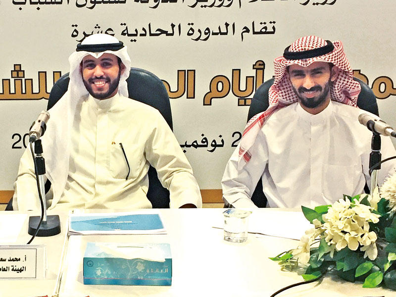 ضمن أنشطة المركز الإعلامي لمهرجان أيام المسرح للشباب بدورته الحادية عشرة، عقد مؤتمر صحافي لممثلي الهيئة العامة للشباب محمد العلوش وفهد العلي، وأدار الحوار الصحافي مفرح الشمري.في البداية، تحدث فهد العلي حول موازنة مهرجان أيام المسرح للشباب للدورة الحالية قائلاً: «إن موازنة الدورة الحادية عشرة تم تقديرها من قبل الهيئة منذ عام، وهي ذاتها التي رصدت للدورة السابقة، وهي لم تتغير منذ عام 2000، ونحن نعلم أنها لا تناسب الوضع الراهن، لكننا نعمل على زيادة الدعم المادي في الدورة المقبلة، وبإذن الله لن نقصر مع الشباب ومع رئيس المهرجان عبدالله عبدالرسول، إضافة إلى ذلك نسعى إلى زيادة عدد المسارح الخاصة بالهيئة».وأشار العلي إلى أن النية تتجه أيضاً لإشراك الشباب الكويتي المبدع في جائزة الكويت للتميز العلمي، مما يشجعهم ويدفعهم أكثر على الإبداع، إذ إن الجائزة تعتبر محفزا ودافعا أساسيا لهم.