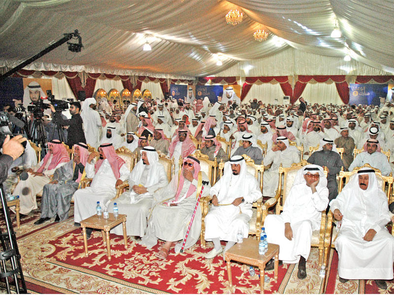 وأضاف الوعلان، ان "57 نفسا كانت ضحية مصيبة سحب الجناسي، وحتى يومنا هذا لم يقدم سبب لسحب جنسية عبدالله البرغش الذي لم يزور ولم يفجر او يخن، في حين نرى ان خنزير دمشق بشار الأسد يقتل في السوريين ليلا ونهارا لكنه لم يسحب جنسية أحد، والعراق يقتلون ولم يسحبوا"، مضيفا انه "أمر غريب أن يحدث ذلك في دولة الكويت دولة المؤسسات والقانون، لأجل رأي، والأغرب أن يخطف شخص مثل سعد العجمي في وضح النهار ويضرب ويهان في مشهد مزعج ومؤلم وكأنه شغل عصابات، إضافة إلى سحب جنسية الشيخ نبيل العوضي، ذلك الرجل الفاضل، وأيضا جنسية مسعد الخثية ليس في الحراك ولم يكن له دور إلا في اعمال الخير ودمعته غالية علينا ولن يردها إلا الأحرار لا المناديب الذين ضربت كراماتهم وهم يتفرجون لا يستحقون الفنجان في مجالسنا، فهل نحن في غابة، لسنا جبناء، وتتحدثون عن اتفاقيات حقوق الإنسان وأنتم من يدوسها"، لافتا إلى "هذا الصمت الطويل ليس لأننا جبناء بل لاحترامنا للقانون والبلد"، مشددا على "ضرورة أن يكون القضاء الكويتي هو الفيصل في قضية سحب الجناسي".وتابع: "نحن لم نخن ولا آباؤنا أو أجدادنا حتى تعاملونا بهذه الطريقة، حتى تجرحوا بمكون رئيسي للمجتمع الكويتي هو القبائل، ويشهد الله نحن لا نريد ان نفرق، لأن البلد سفينة واحدة، تحتضن القبائل والحضر والسنة والشيعة وكل شريف، وهذا أمر طبيعي لكن القوانين لا تتجزأ او تطبق على مجموعة دون أخرى"، متسائلا: "منذ متى كان القيد الأمني على الكويتيين؟ أين نحن من مخابرات البعث؟ من يريد التوظيف يراجع الديوان الأميري وأمن الدولة؟"، مبينا "اننا سكتنا طويلا وظنوا أنه جبن، لكننا نقول احذر الحليم إذا غضب، وبالتالي فإن الأمور لا تسير بهذا الشكل، فما تعرضنا له في هذه الدائرة والصباحية وفي المسجد الكبير مزعج جدا، المقنعون يضربوننا في منازلنا وجرحوا كرامتنا في صباح الناصر، ولا يزال الدخان وترويع الحرائر وكبار السن في نفوسنا، وتحضرون لنا نكرة يفتل عضلاته علينا، لكننا إذا اشتهينا نكسر عضلاته فوق رأسه، لكن الاحترام لبلدنا بلد القانون لا المزاج، فنحن لسنا طوفة هبيطة لك أو لغيرك يا محمد الخالد".البرنامج الانتخابي