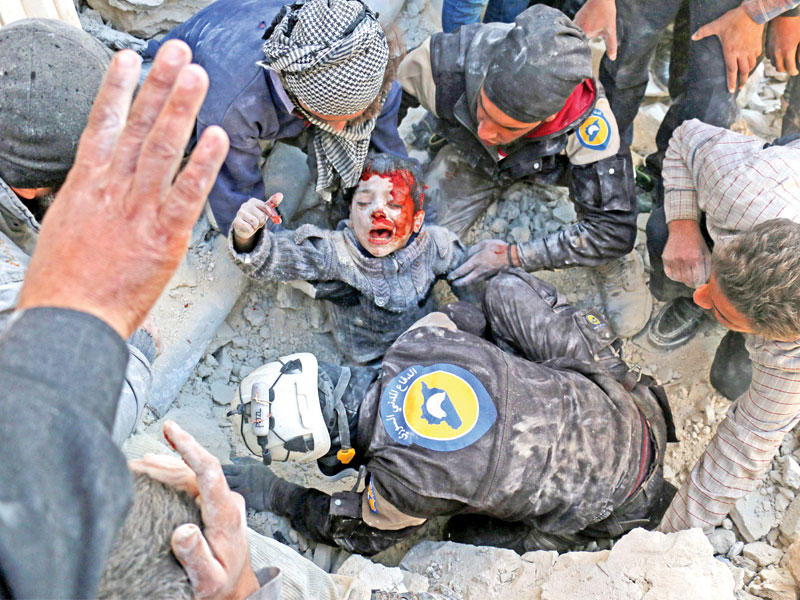 ووسط أنباء عن طلب مبعوث الأمم المتحدة ستيفان ديميستورا بإعفائه من منصبه بسبب إصابته بـ"الإحباط" من إمكان تحقيق أي تقدم في المسار السياسي وتعرضه لضغوط مستمرة وصلت لطعن روسيا في صدقيته وحياديته، اتهم رئيس مجموعة العمل التابعة للأمم المتحدة يان إيغلاند نظام الأسد بعدم تقديم التسهيلات اللازمة لوصول الإغاثة للمناطق المحاصرة التي تتزايد مع تناقص المساعدات.وفي مؤتمر صحافي غاب عنه ديميستورا، كشف إيغلاند عن حصول فريق العمل الإنساني "على موافقة خطية من فصائل المعارضة على تأمين دخول المساعدات لحلب الشرقية والقيام بعمليات الإجلاء لأسباب طبية وينتظر الضوء الأخضر من النظام بعد تلقيه تأييداً شفهياً من روسيا". وشدد إيغلاند على ضرورة تحييد المرافق الطبية في حلب عن أي استهداف.حرق دوما