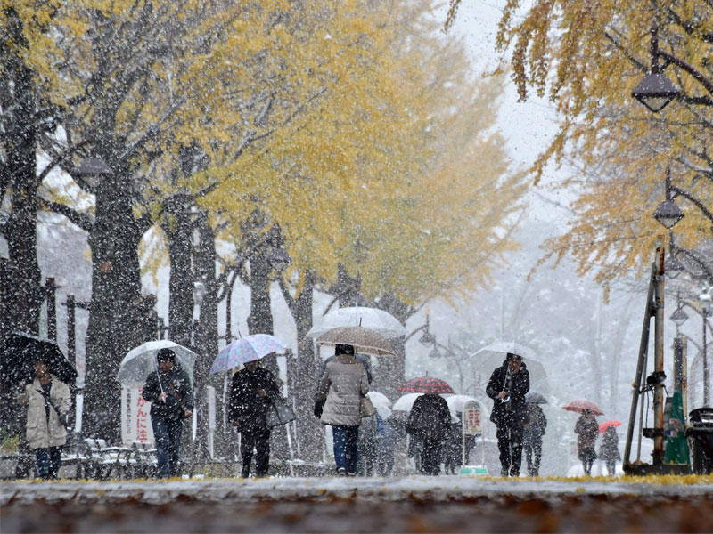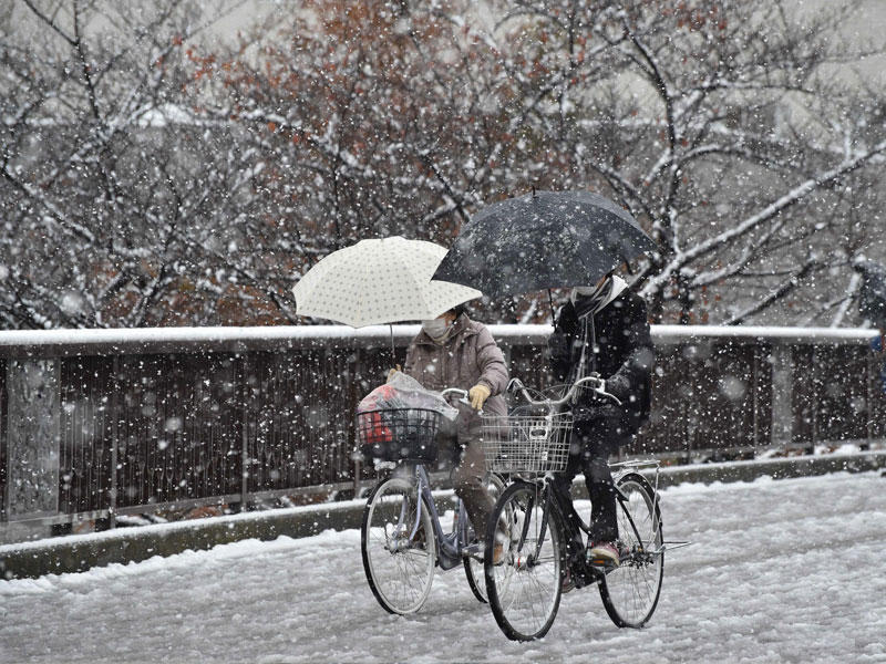واقتربت درجات الحرارة في طوكيو والمناطق المحيطة لدرجة الصفر تقريباً في الصباح، وهو المستوى، الذي نادراً ما يتم تسجيله في هذا الوقت من العام، كما أن هذا الطقس غير المتوقع تسبب في وقوع إصابات وتأخر طفيف فى مواعيد القطارات.