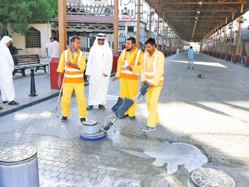 البلدية: غسل شوارع «المباركية» للمحافظة على السوق التراثي