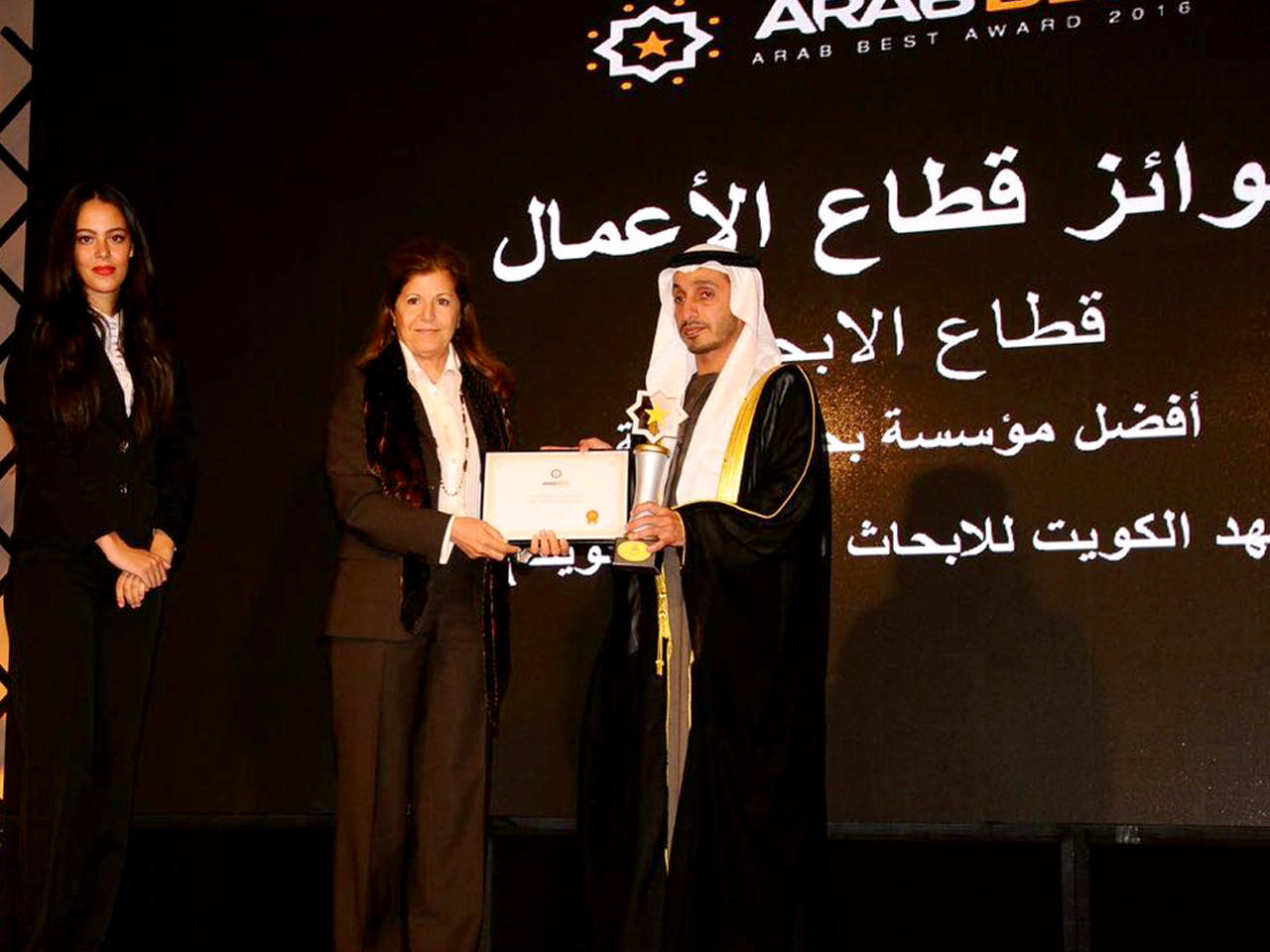 أعلن معهد الكويت للأبحاث العلمية فوزه بجائزة أفضل مؤسسة بحثية عربية في قطاع الأبحاث لعام 2016 (أفضل العرب).وقال المعهد في بيان صحافي أمس، إن "المديرة العامة للمعهد د. سميرة عمر تسلمت الجائزة من الوزير المفوض بسفارة دولة الإمارات العربية المتحدة بالمملكة المغربية سعيد الكتبي، في حفل أقامته الأمانة العامة للجائزة في مراكش أخيراً".