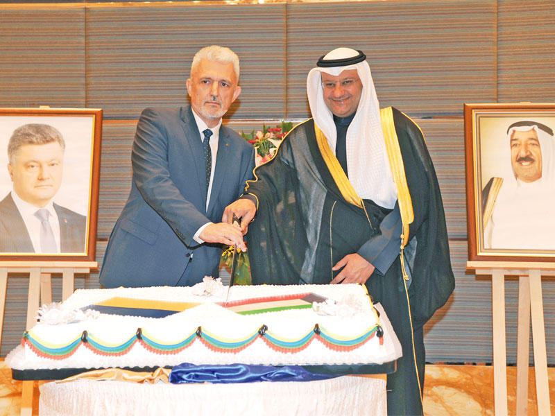 احتفلت سفارة أوكرانيا لدى البلاد، أمس الأول، بعيد استقلالها الـ25، بحضور وزير الصحة د. علي العبيدي، ممثلاً عن الحكومة الكويتية، وعدد من رؤساء البعثات الدبلوماسية والمواطنين، والجالية الأوكرانية في الكويت. وبهذه المناسبة، قال سفير أوكرانيا لدى الكويت فولوديمير تولكاش، إن "العلاقات الكويتية- الأوكرانية تشهد تطوراً مستمراً في مختلف المجالات"، مؤكداً أن "هناك حرصاً من قيادتي البلدين على تنمية تلك العلاقات المتميزة والقوية".