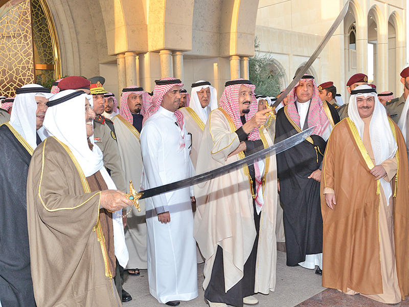 وصل إلى البلاد، عصر أمس، ضيف الدولة الكبير خادم الحرمين الشريفين الملك سلمان بن عبدالعزيز ملك المملكة العربية السعودية الشقيقة والوفد الرسمي المرافق له، وذلك في زيارة رسمية للبلاد يجري خلالها مباحثات رسمية مع سمو أمير البلاد الشيخ صباح الأحمد.وكان على رأس مستقبلي خادم الحرمين الشريفين على أرض المطار صاحب السمو وسمو ولي العهد الشيخ نواف الأحمد وكبار الشيوخ ونائب رئيس الحرس الوطني الشيخ مشعل الأحمد، وسمو الشيخ ناصر المحمد، وسمو رئيس مجلس الوزراء الشيخ جابر المبارك، ووزير شؤون الديوان الأميري الشيخ ناصر صباح الأحمد، والنائب الأول لرئيس مجلس الوزراء وزير الخارجية الشيخ صباح الخالد، ونائب رئيس مجلس الوزراء وزير الداخلية الشيخ محمد الخالد.وكان في استقبال الملك أيضاً نائب وزير شؤون الديوان الأميري الشيخ علي الجراح، ونائب رئيس مجلس الوزراء وزير الدفاع الشيخ خالد الجراح، ونائب رئيس مجلس الوزراء وزير المالية وزير النفط بالوكالة أنس الصالح، والوزراء والمحافظون وكبار المسؤولين بالدولة وكبار القادة بالجيش والشرطة والحرس الوطني والإدارة العامة للإطفاء.وجرت لخادم الحرمين الشريفين مراسم استقبال رسمية، حيث عزف السلام الوطني للبلدين الشقيقين بعدها توجه ضيف الدولة الكبير يرافقه صاحب السمو باستعراض حرس الشرف لقطاعات الجيش الكويتي. ثم صافح الملك عبدالعزيز كبار المسؤولين بالدولة، في حين صافح صاحب السمو كبار المسؤولين المرافقين لضيف الدولة الكبير.