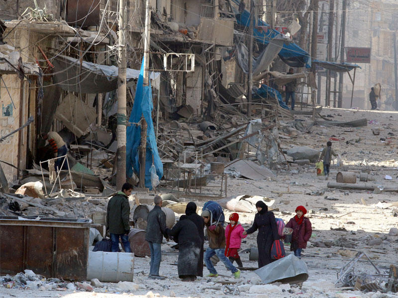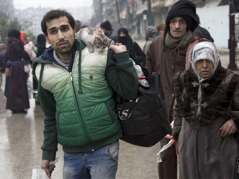 مدنيون سوريون يغادرون شرق حلب أمس (رويترز)