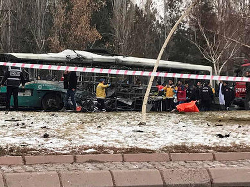 وأظهرت صور بثها التلفزيون هيكل الحافلة المتفحم في حين نقلت سيارات الاسعاف الجرحى إلى المستشفيات.ويأتي الانفجار بعد أسبوع على تفجير مزدوج وقع في 10 ديسمبر في اسطنبول أسفر عن مقتل 44 شخصاً، أعلنت مجموعة كردية مسؤوليتها عنه.وقال نائب رئيس الوزراء ويسي كايناك في تصريحات تلفزيونية أن التفجير في قيصرية «شبيه للأسف» بالتفجيرين اللذين وقعا الأسبوع الماضي في اسطنبول.وقال الجيش أن الحافلة استهدفت بعد أن خرجت من المقر العام للجيش في المدينة.وذكرت وكالة الأنباء دوغان أن الحافلة تعود لسلطات النقل البلدية في قيصرية وأنها كانت تنقل الجنود الذين كانوا في مأذونية لتمضية النهار في السوق المحلية.وذكرت وكالة أنباء الأناضول أن رئيس الأركان الجنرال خلوصي أكار أبلغ الرئيس رجب طيب اردوغان بالاعتداء.وأضافت أن وزير الداخلية سليمان صويلو في طريقه إلى قيصرية.