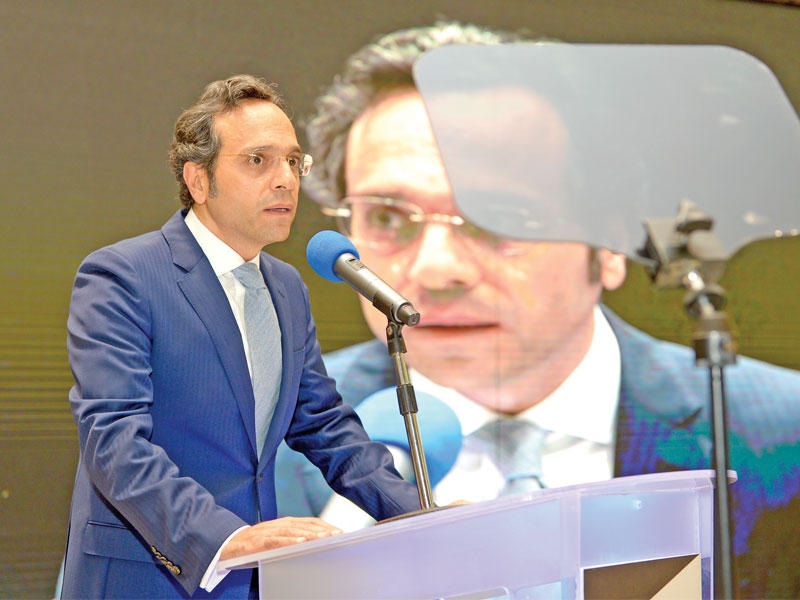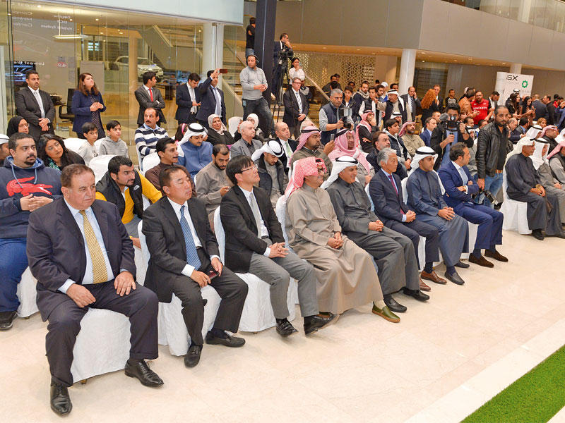المدير العام لاكورا عماد ملاعب متوسطاً الزميلين المدير العام لـ "الجريدة" أشرف خليل ويوسف العبدالله وعدداً من ضيوف الإمارات لحضور حفل الإطلاق