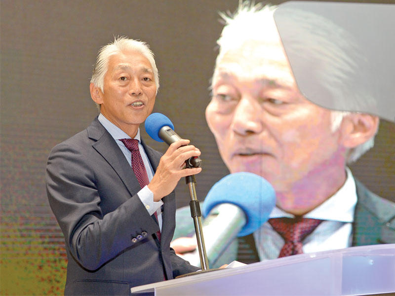 عماد فليحان وهيرواكي شيباتا وطلال الملا يتوسطون كبار الزوار