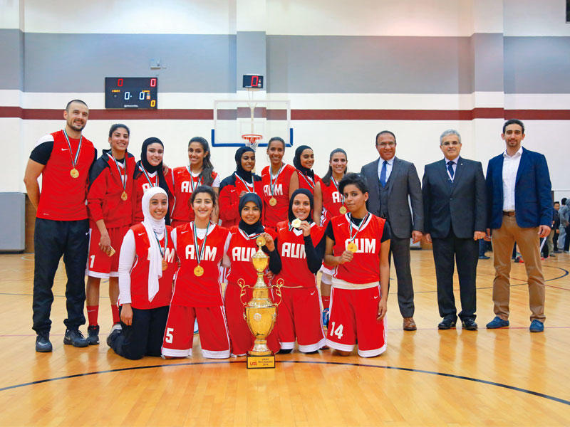حصدت جامعة «AUM» المركز الأول في دوري الجامعات الخاصة لكرة السلة للطالبات، بعد فوزها بـ26 نقطة مقابل 21 نقطة لفريق الجامعة الأميركية بالكويت.