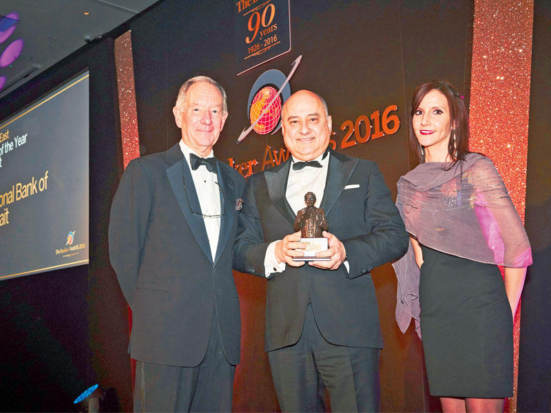 تسلم بنك الكويت الوطني جائزة أفضل بنك في الكويت لعام 2016 في احتفال كبير نظمته مؤسسة «فايننشال تايمز» الناشرة لمجلة «ذي بانكر» في العاصمة البريطانية، بحضور جمع غفير من أبرز الخبراء المصرفيين العالميين والرؤساء التنفيذيين لأهم المؤسسات المالية الإقليمية والعالمية.