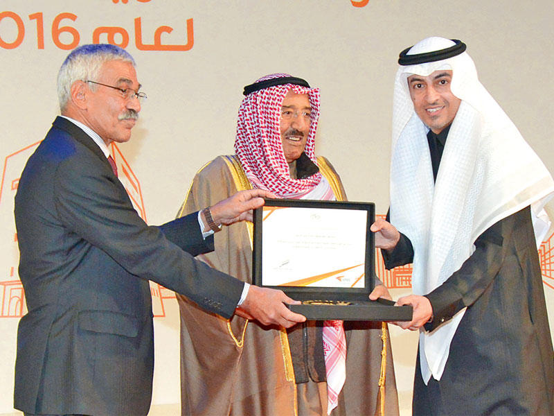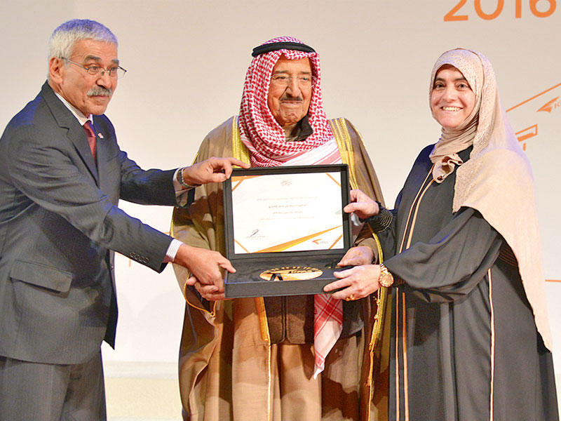 كرم سمو أمير البلاد الفائزين بجوائز مؤسسة الكويت للتقدم العلمي لعام 2016، وذلك في قصر بيان بحضور ولي العهد وكبار المسؤولين في الدولة.