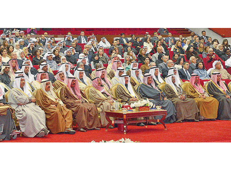 سموه رعى الحفل الذي أقيم بحضور ولي العهد والمحمد والمبارك وكبار المسؤولين في الدولة