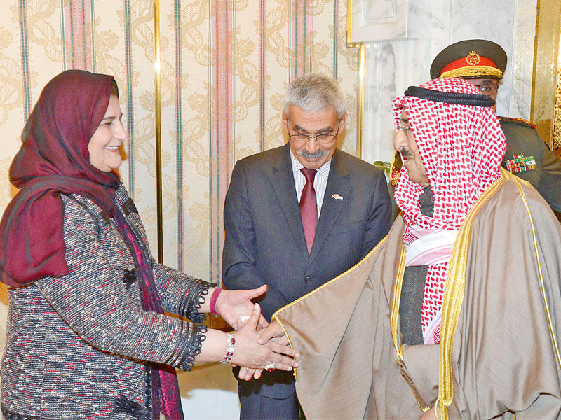 الأمير مصافحاً فايزة الخرافي لدى وصوله