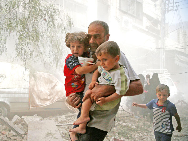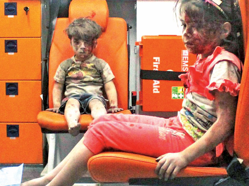يوم 18 أغسطس، تصدرت صورة الطفل السوري عمران، الذي أُنقذ من تحت الأنقاض مع أخته دون عائلتهما، الصفحات الأولى في معظم الصحف، ونقلتها جميع وسائل الإعلام المختلفة. وفي هذه الصورة التي أصبحت رمزاً للرعب في سورية بدا الطفل، ذو الخمسة أعوام، مذهولاً وهو جالس على كرسي عربة الإسعاف برتقالي اللون، وكان يغطي وجهه بيده المغطاة بخليط من الدماء والتراب.الأكراد يغنمون الحسكة