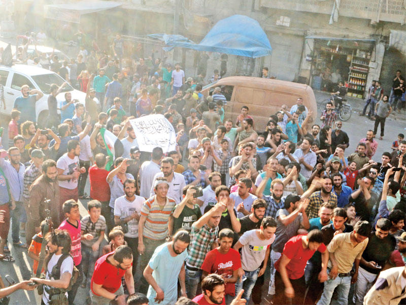 في 28 يوليو، كشف زعيم جبهة النصرة أبومحمد الجولاني، لأول مرة، عن وجهه وأعلن في تسجيل مصور فك الارتباط عن تنظيم القاعدة، وتغيير اسم جماعته إلى "جبهة فتح الشام"، مؤكدا أن ذلك جاء "نزولا عند رغبة أهل الشام في دفع ذرائع المجتمع الدولي، وعلى رأسه أميركا وروسيا، في قصفهم وتشريدهم بحجة استهداف قاعدة الجهاد".روسيا تقصف من إيران