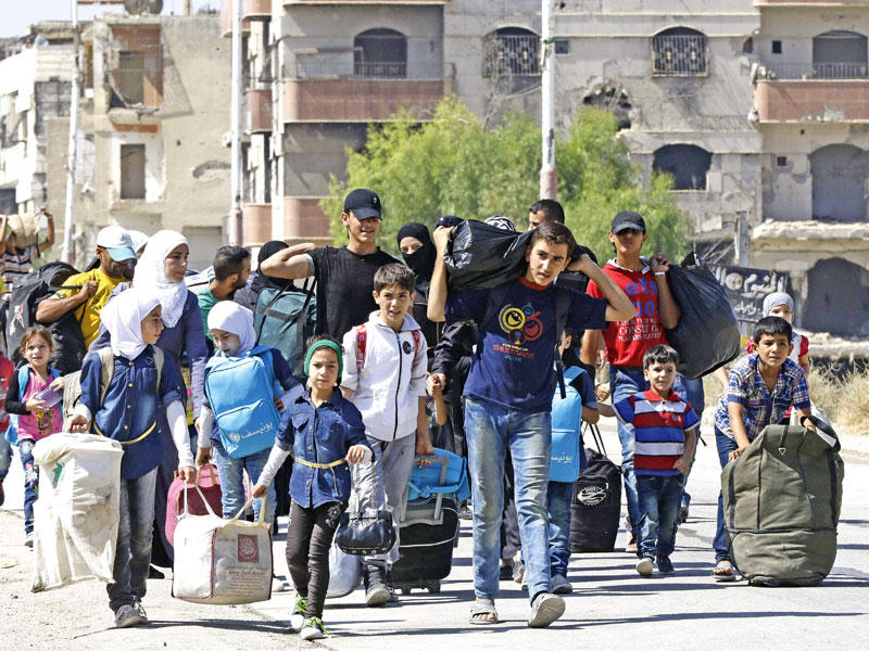 بعد 4 أعوام من الحصار والتجويع، نجح الأسد يوم 26 أغسطس في إجبار أهالي داريا، الواقعة في الغوطة الغربية لدمشق، على رفع راية الاستسلام، وترك مدينتهم، رمز الثورة ضد نظامه، لتدخلها قواته غير منتصرة، وتستولي على ما تبقى من أنقاضها، في إطار اتفاق مع فصائل المعارضة، يقضي بخروج 700 مقاتل إلى إدلب، وتسليم أسلحتهم، و4000 من الرجال والنساء مع عائلاتهم إلى مراكز إيواء.خريطة الانتقال