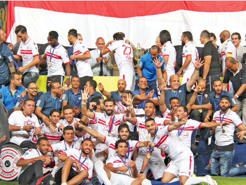 وعلى مستوى الأندية، شهد عام 2016 عودة تألق نادي الزمالك أحد قطبي الكرة المصرية بوصوله لنهائي دوري أبطال إفريقيا، كما توجت القلعة البيضاء بكأس مصر للمرة الرابعة على التوالي، وذلك عقب الفوز على الغريم التقليدي النادي الأهلي في نهائي المسابقة المحلية.على الجانب الآخر، شهد هذا العام اهتزازا نسبيا للفريق الكروي الأول بالنادي الأهلي، حيث خرج الفريق من دور الثمانية لدوري الأبطال الإفريقي باحتلاله المركز الثالث في مجموعته، ولكن قابل الأهلي ذلك بالعودة القوية محليا، حيث استرد درع الدوري العام من غريمه التقليدي الزمالك ليضيف الدرع رقم 38 له على مدار تاريخه الكروي، كما شهد هذا العام نجاح المهندس هاني أبوريدة عضو المكتب التنفيذي للفيفا في انتخابات رئاسة الاتحاد المصري لكرة القدم.وعلى المستوى الاحترافي، شهد 2016 انتقال اللاعب محمد النني من نادي بازل السويسري إلى أرسنال الإنكليزي، وانتقال لاعب الأهلي رمضان صبحي إلى ستوك سيتي بالدوري ذاته، كما انتقل أيضا لاعب الزمالك عمر جابر إلى بازل السويسري، بينما واصل محمد صلاح تألقه مع روما الإيطالي.3 برونزيات في رفع الأثقال