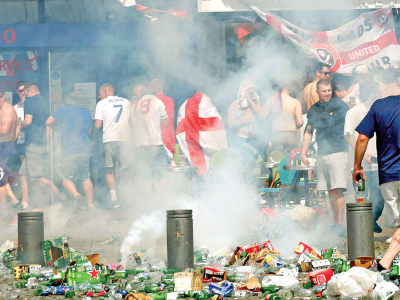 اندلعت أعمال عنف في يونيو بالمرفأ القديم لمدينة مرسيليا بين مشجعين معظمهم مخمورون، قبل مواجهة إنجلترا وروسيا في منافسات المجموعة الثانية لكأس أوروبا 2016. واستخدم نحو 250 رجل شرطة الغازات المسيلة للدموع، ما اضطر الجماهير للهرب في الشوارع القريبة مستمرين في قتالهم وتمزيق ملابسهم وكسر زجاجات الجعة.ووقعت أحداث مماثلة قبلها بيوم، حيث هاجم نحو 250 من أنصار المنتخب الإنكليزي الشرطة الفرنسية، ورموا على عناصرها العلب والزجاجات الفارغة.العامري يعيد مشهد «نيس» في برلين