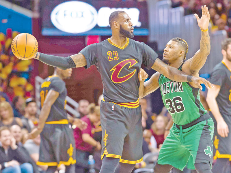 في دوري كرة السلة الأميركي للمحترفين، تخطى كليفلاند كافالييرز حامل اللقب ضيفه بوسطن سلتيكس بصعوبة 124-118، عشية احتفال نجمه ليبرون جيمس بعيده الثاني والثلاثين.