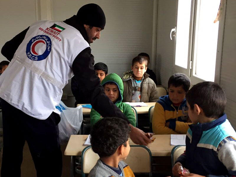 وزع الفريق الميداني بجمعية الهلال الأحمر أمس مساعدات انسانية على النازحين واللاجئين في مخيم «سجو» التابع لمدينة اعزاز بريف حلب شمالي سورية.وقال منسق ادارة «الشباب والمتطوعين» بالجمعية شملان فخرو، في تصريح لـ«كونا»، إن «المساعدات الإغاثية تأتي استكمالا لبرنامج الفريق الذي انطلق في 23 ديسمبر الماضي لإغاثة النازحين السوريين من شرق مدينة حلب».وأوضح فخرو أن برنامج المساعدات التي انطلقت من مدينة كليس جنوبي تركيا الى أعزاز عبر بوابة السلام، تضمن توزيع بطانيات وسلات غذائية وسلات نظافة ووقود للتدفئة، مشيرا إلى أن الفريق الميداني قام بزيارة مدرسة مخيم «سجو»، حيث عمل على توزيع هدايا وحلويات على الطلبة.