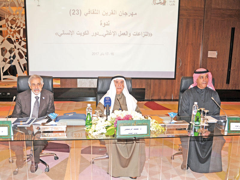 استهل مهرجان القرين الثقافي ندواته الفكرية، بندوة «النزاعات والعمل الإغاثي ودور الكويت الإنساني».