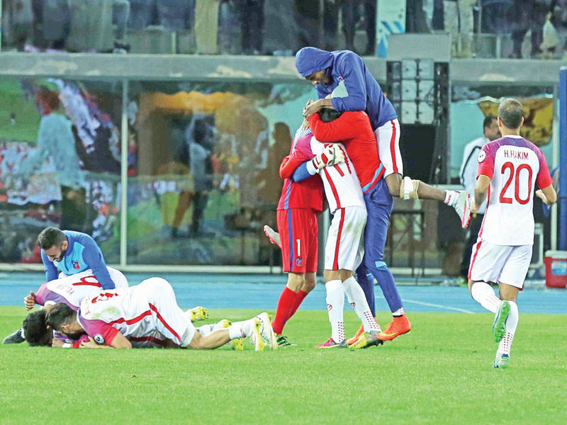 فرحة لاعبي الأبيض بعد ركلات الترجيح