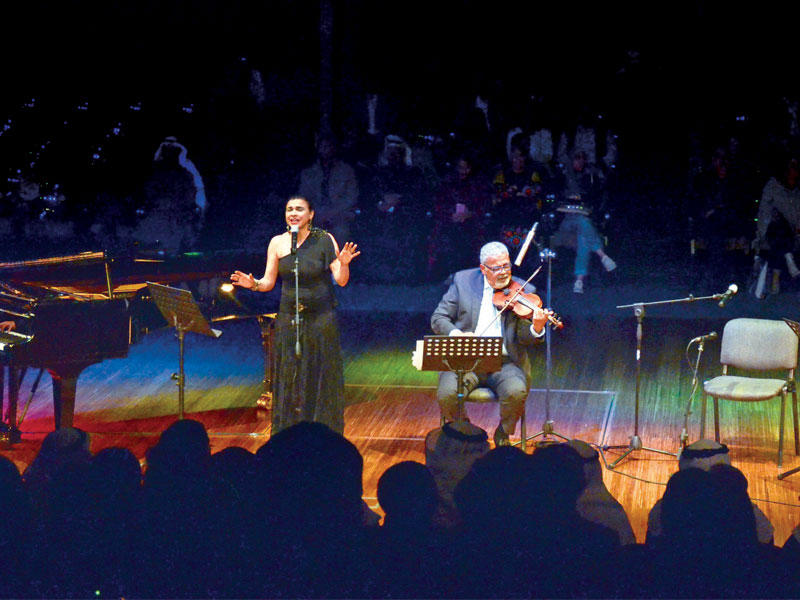 قدم عازف الكمان العالمي د. ألفريد جميل، ومن معه، سهرة موسيقية فريدة، فيها الجمال تراءى والفخار شدا، حيث احتوت على كل شيء، غناء وعزف وألحان وثقافة وطرافة، مساء أمس الأول، في مركز اليرموك الثقافي بدار الآثار الإسلامية.وفي الغناء، دعا الموسيقار الكبير ألفريد مجموعة من المواهب، سواء الواعدة أو المتميزة، لمشاركته إسعاد الجمهور، وكانت البداية مع المغني الواعد محمد سعيد، الذي يشبه المطرب الكبير محمد قنديل شكلا وصوتا، فغنى له أغنية "3 سلامات"، من كلمات مرسي جميل عزيز، وألحان محمود الشريف.ثم دعا الفنان فيصل خاجه، الذي اعتبره ألفريد مرجعا في الاغاني القديمة، فغنى خاجه بمصاحبة عوده أغنية "يا ترى نسي ليه" لمطربة الخمسينيات من القرن الماضي، فتحية احمد، من كلمات محمد الحسيني، وألحان محمد القصبجي.
