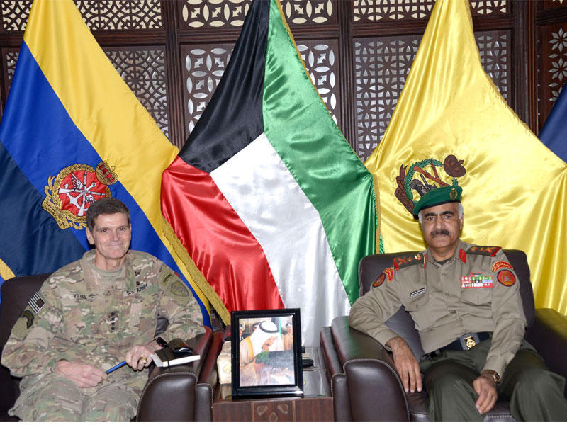 بحث رئيس الأركان العامة للجيش الفريق الركن محمد الخضر، أمس، مع قائد القيادة الأميركية الوسطى الفريق اول جوزيف فوتال عددا من المواضيع المتعلقة بالتعاون المشترك.وقالت مديرية التوجيه المعنوي والعلاقات العامة بوزارة الدفاع، في بيان صحافي، ان الجانبين بحثا، على هامش اجتماع اللواء الخضر مع الفريق اول جوزيف والوفد المرافق له بمناسبة زيارته للبلاد، أهم الأمور والمواضيع ذات الاهتمام المشترك، لاسيما المتعلقة بالجوانب العسكرية.حضر اللقاء معاون رئيس الأركان لهيئة العمليات والخطط اللواء الركن أحمد العميري.