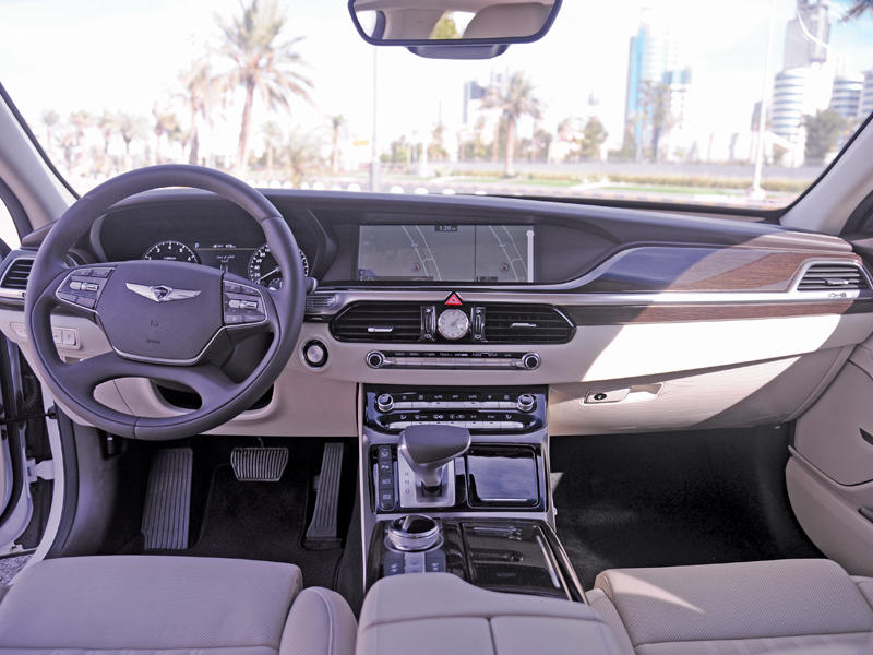 في مبادرة كريمة وخاصة، دعت شركة شمال الخليج الموزع الحصري لعلامة جينيسيس التجارية في البلاد "الجريدة" لتجربة قيادة الفاخرة جينيسيس G90 الجديدة كليا في شوارع البلاد، والتي أثبتت بكل جدارة أنها مريحة في القيادة، رغم قدرتها على الوصول الى سرعات عالية.ولحسن الحظ فقد كانت تجربة القيادة على جينيسيس G90 ذات محرك 8 سلندرات الأعلى فئة وسرعة وأداء، والتي كانت أشبه بصاروخ على الطريق سريع الانفجار، إلا أن الإعجاز فيها لم يصاحب ذلك أي قلق قد يشعر به قائد المركبة أثناء الصعود للسرعات العالية أو حتى أو عدم ثبات المركبة، بل على العكس كلما ارتفعت السرعة في G90 أصبحت أكثر ثباتا على الطريق، ما يشير الى تجهيزاتها الضخمة في مجالي الثبات والسرعة، ولا سيما تزويدها بأربعة خيارات مختلفة لأنماط القيادة، وهي الذكي والرياضي والشخصي والاقتصادي.ولعل الحديث عن مميزاتها وخاصة الداخلية له وقفة خاصة، ففي G90 قد تصل بك الرغبة الى عدم النزول من المركبة من شدة جمالها ومواصفاتها، ولاسيما الجهة الخلفية منها، والتي تعطي انطباعا ملكيا بحتا بجميع المواصفات التي تحلو لك من تحكم سهل للمقاعد الخلفية، والقدرة على تخزين وضعيتها، الى جانب الشاشات بتفاصيلها والتحكم بالصوتيات بشكل مباشر، الى جانب التكييف والتبريد للمقاعد أو حتى للمركبة بشكل عام، فضلا عن الجهة الأمامية، فهي أشبه بلوحة تحكم كاملة لمركبة فضائية مليئة بالأزرار التي تعكس تفاصيل هذه المركبة الذكية.الاستشعار الذكي