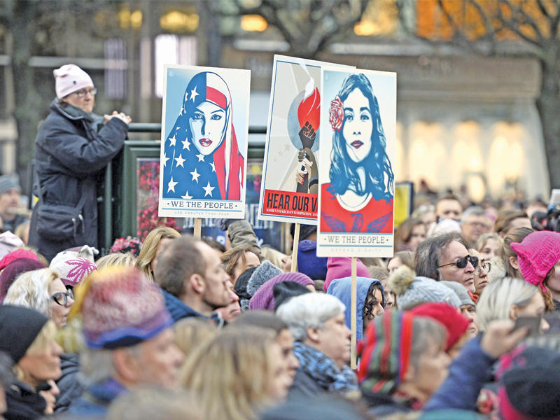 وغداة التنصيب الذي جذب مئات الآلاف من مؤيديه الى واشنطن، شهدت الولايات المتحدة وعدد من دول العالم تظاهرات واسعة لمعارضي الرئيس الجديد بمبادرة من نساء عبر دعوة اطلقت على مواقع التواصل الاجتماعي.ودشن آلاف الاستراليين والنيوزيلنديين من نساء ورجال أمس سلسلة التجمعات هذه. وتظاهر الرجال والنساء بالآلاف في سيدني وملبورن في استراليا وفي ولينغتون واوكلاند في نيوزيلندا في "مسيرة النساء"، تعبيرا عن احتجاجهم على الازدراء الذي عبر عنه ترامب ازاء النساء.وستبلغ هذه التظاهرات ذروتها في واشنطن التي من المنتظر ان يتجمع فيها نحو مئتي الف شخص في باحة مقر الكونغرس (الكابيتول) حيث تم تنصيب قطب العقارات رئيسا للولايات المتحدة في مراسم حضرها، كما قال خبير، ثلث الذين جاؤوا لتحية سلفه باراك اوباما عند تنصيبه في 2009.وأعلنت منظمات التظاهرات ان نحو 300 "مسيرة شقيقة" ستجرى في مدن اخرى في الولايات المتحدة بينها نيويورك وبوسطن ولوس انجلس وسياتل. وأعلن شعراء وكتاب في نحو ثلاثين ولاية اميركية ومدن في العالم عن قراءة نصوص امام الحشود لادانة ترامب.وقال المنظمون ان نحو 600 تظاهرة ستجري في العالم احتجاجا على تصريحات ترامب ضد المرأة وكذلك ضد المهاجرين والمسلمين.تسليم السلطة تم أيضاً عبر «تويتر»