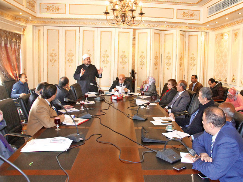وزير الأوقاف محمد جمعة متحدثا خلال اجتماع لجنة الشؤون الدينية بمجلس النواب وسط القاهرة أمس (الجريدة)