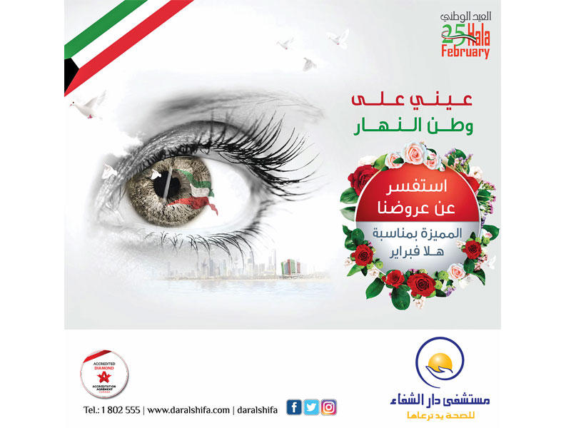 إيذانا ببدء فعاليات الأعياد الوطنية، أعلن مستشفى دار الشفاء إطلاقه عروضه الخاصة، التي تستمر طوال فبراير 2017، على مجموعة من الخدمات الطبية المختلفة، لمشاركة الفرحة والبهجة مع الجميع. وبهذه المناسبة، يتقدم مستشفى دار الشفاء وجميع العاملين به باسمى آيات التهنئة من صاحب السمو أمير البلاد الشيخ صباح الأحمد الجابر الصباح حفظه الله، وولي العهد الشيخ نواف الأحمد الجابر الصباح والمواطنين والمقيمين على أرض الكويت الحبيبة.تأتي عروض الأعياد الوطنية هذا العام بخصومات مميزة على العديد من الخدمات الطبية التي يقدمها المستشفى في مختلف التخصصات كجراحات تصحيح النظر المختلفة مثل الليزك، الإبي ليزك والفيمتو ليزك بقسم طب وجراحة العيون، جراحات علاج السمنة وبالون المعدة الذكي بقسم الجراحة العامة، جلسات نحت الجسم والقوام باستخدام جهاز فيلا شيب III، إضافة إلى باقة الفحوصات العامة للرجال والسيدات والنخبة.في هذا الصدد، صرح السيد أحمد نصرالله الرئيس التنفيذي في مستشفى دار الشفاء، حيث قال: "يغتنم مستشفى دار الشفاء دوما مختلف المناسبات والأعياد على مدار العام ليقدم خدماته المخفضة للمرضى كجزء من مسؤوليته الاجتماعية التي يسعى لتحقيقها على أرض الواقع. وككل عام، نسعد بمشاركة الوطن أفراحه وبهجته عبر حوائطه التي تضيء في كل عام بألوان علم الكويت لتعكس بدورها البهجة والسرور في قلوب المرضى والمراجعين".وأضاف: "تأتي عروض المستشفى هذا العام على العديد من الخدمات الشائعة التي يحرص على القيام بها شريحة عريضة من المرضى، فحرصنا على أن يتم تقديمها بأسعار مخفضة وبنفس الجودة والكفاءة التي تتميز بها خدماتنا على الدوام لتصبح في متناول الجميع".