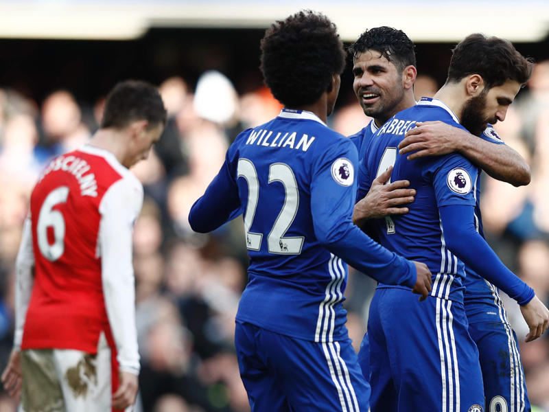 أزاح تشلسي جاره اللندني أرسنال بنسبة كبيرة عن درب لقب الدوري الإنكليزي لكرة القدم، عندما هزمه 3 - 1 أمس على ملعبه «ستامفورد بريدج» أمام 41 ألف متفرج في افتتاح المرحلة الرابعة والعشرين.ورفع تشلسي رصيده إلى 59 نقطة في الصدارة قبل 14 مرحلة على ختام الموسم، بفارق 12 نقطة عن أرسنال الثالث والباحث عن لقبه الأول منذ 2004.وارتفعت حظوظ المدرب الإيطالي أنطونيو كونتي بإحرازه اللقب في أول موسم له مع الـ «بلوز»، والأول للنادي منذ 2015، إذ حقق فوزه التاسع على التوالي على أرضه هذا الموسم وتحديدا منذ سقوطه أمام ضيفه ليفربول 1 - 2 في 16 سبتمبر الماضي في المرحلة الخامسة. أما الخسارة الأخيرة لتشلسي على أرضه أمام أرسنال فتعود الى 29 أكتوبر 2011 (3-5).وبكر تشلسي بافتتاح التسجيل بعد كرة رأسية من المهاجم الإسباني دييغو كوستا ارتدت من عارضة الحارس بتر تشيك، تابعها زميله ومواطنه الظهير ماركوس الونسو برأسه في الشباك الخالية (13).