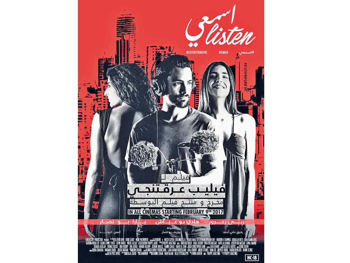 في الصالات اللبنانية عروض للفيلم الرومانسي «اسمعي» (Listen) للمخرج فيليب عرقتنجي، ويتولى الأدوار الرئيسة فيه كلّ من هادي بو عياش وربى زعرور ويارا بو نصار، ويشارك في بطولته الممثلون رفيق علي أحمد وجوزف بو نصار ولمى لاوَند.