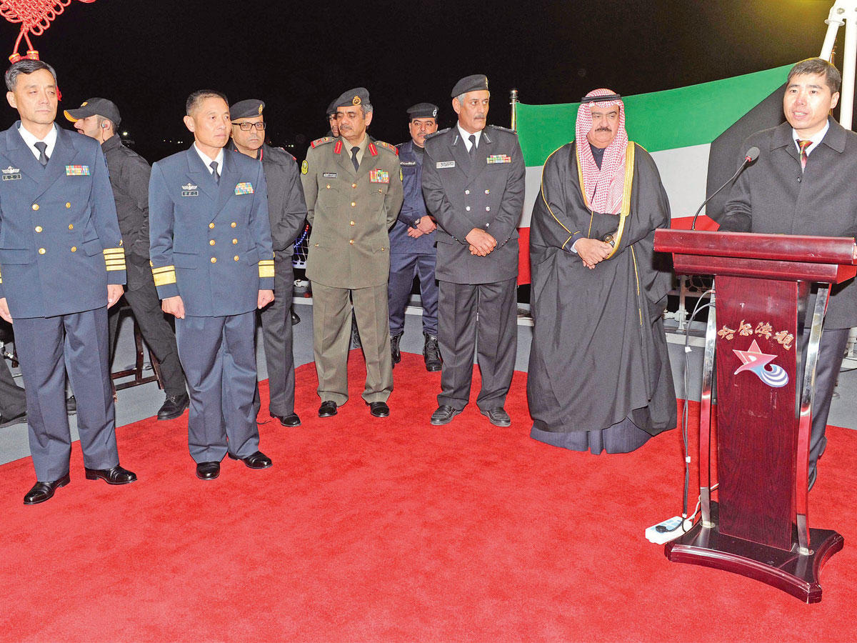 من جهته، أشاد محافظ العاصمة الفريق أول متقاعد ثابت المهنا بقوة ومتانة العلاقات الكويتية - الصينية، والتي وصفها بالمتطورة على كافة الأصعدة ومختلف مجالات التعاون.ولفت المهنا إلى ان الصين اضحت قوة عالمية لا يستهان بها، وإلى ان التعاون بين البلدين يشهد ازدهارا مميزا.بدوره، أعرب السفير الصيني لدى الكويت وانغ دي، ان أسطول الحراسة البحري الصيني قدم مساهمة مهمة لحماية أمن الممرات البحرية الدولية، وجسد التزام الجيش الصيني بمسؤوليته لحفظ الأمن والسلام الدوليين.وأضاف دي، في كلمته خلال حفل الاستقبال الذي نظمته السفارة الصينية أمس الأول على متن السفينة الحربية «هاربين»، أن الصين ظلت تسعى إلى التنمية السلمية وتؤدي واجباتها لحفظ السلام الدولي بخطوات ثابتة.وتابع دي أن التعاون الثنائي بين البلدين يشهد تطورا حيويا في ظل التشارك ببناء «الحزام الاقتصادي لطريق الحرير وطريق الحرير البحري للقرن الـ21».