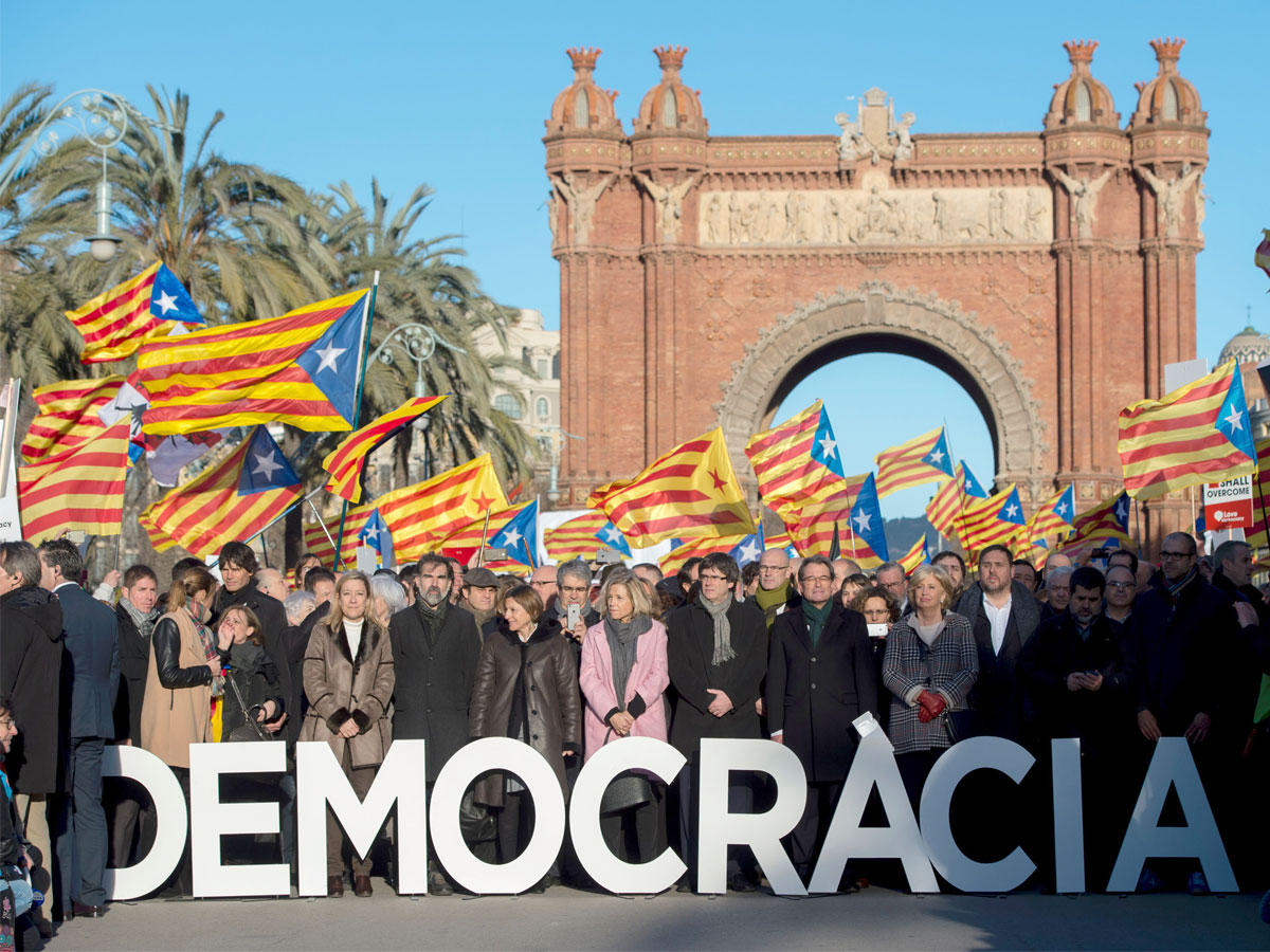 نظم انفصاليو مقاطعة كاتالونيا الإسبانية تظاهرات حاشدة، أمس، بالتزامن مع بدء محاكمة الرئيس السابق للمقاطعة الغنية، آرتو ماس، بسبب تحديه الدولة الإسبانية بتنظيم استفتاء حول الانفصال عن مدريد في نوفمبر 2014.وتظاهر عشرات الآلاف وهم يهتفون «ليسقط القضاء الإسباني» في برشلونة. ورافق المتظاهرون الذين بلغ عددهم نحو 40 ألفا، ماس واثنتين من أعضاء حكومته متهمتين معه، في مسيرة طويلة حتى مقر محكمة استئناف كاتالونيا، حيث تستمر المحاكمة حتى يوم الجمعة المقبل.وقال ماس خلال استراحة في جلسة المحاكمة، إن «الديمقراطية هي التي تحاكم هنا وليس الاستقلال». وأضاف: «إنها المرة الأولى التي تحاكم فيها حكومة ديمقراطية لأنها سمحت للشعب بالتصويت».