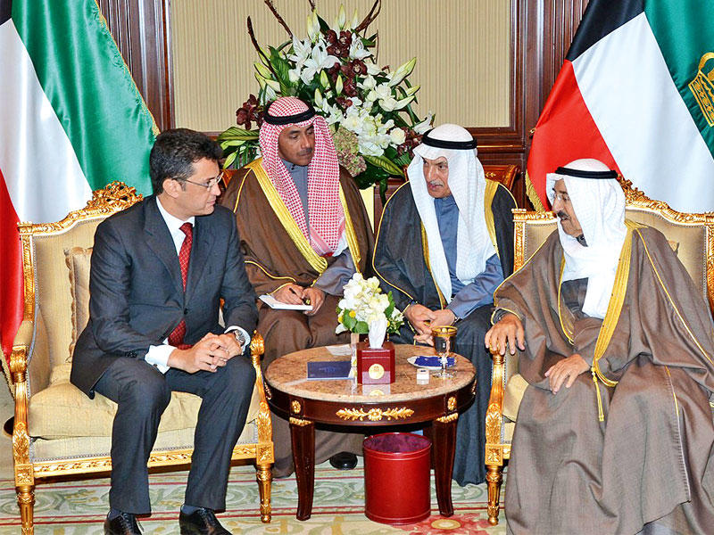 استقبل سمو أمير البلاد الشيخ صباح الأحمد بقصر بيان صباح أمس سمو الشيخ ناصر المحمد.واستقبل سموه، بحضور سمو ولي العهد الشيخ نواف الأحمد، وزيرة الشؤون الاجتماعية والعمل وزيرة الدولة للشؤون الاقتصادية هند الصبيح، ووزير الأشغال العامة عبدالرحمن المطوع، ورئيس مجلس إدارة مجموعة شركات ليماك القابضة نيهات أوزدامير، والوكيل المحلي لمشروع مبنى الركاب الجديد في مطار الكويت الدولي العضو المنتدب في مجموعة الخرافي مرزوق الخرافي، وأعضاء الشركة، حيث قدموا لسموه شرحا حول المشروع. وأشاد سموه بالجهود المبذولة من قبل القائمين على هذا المشروع الحيوي المهم، الذي يساهم في زيادة الطاقة الاستيعابية لمطار الكويت الدولي، من خلال توفير أعلى مستويات الراحة والتسهيلات لحركة الركاب.كما أشاد سموه بالعلاقات المميزة التي تربط بين الكويت والجمهورية التركية، والتي تشهد الكثير من التعاون في مختلف المجالات، متمنيا سموه لتركيا دوام التوفيق والنجاح.