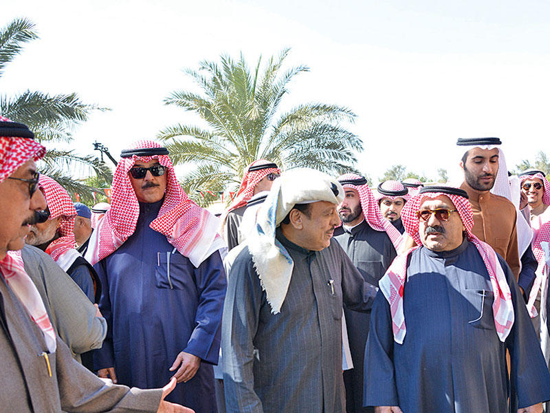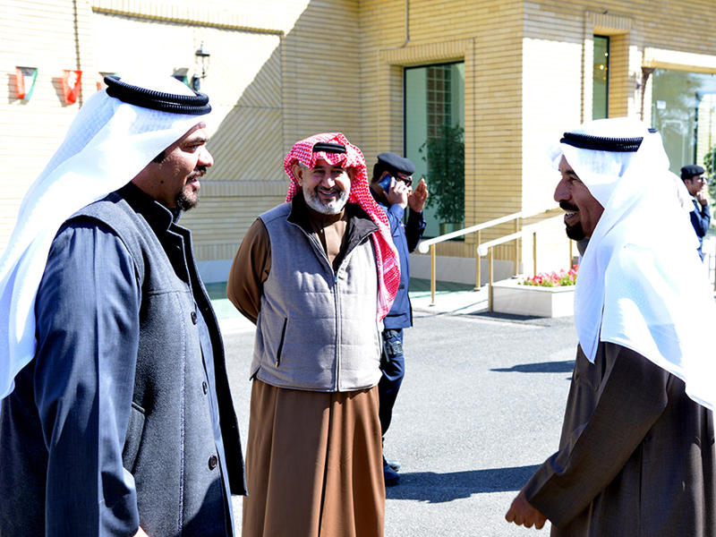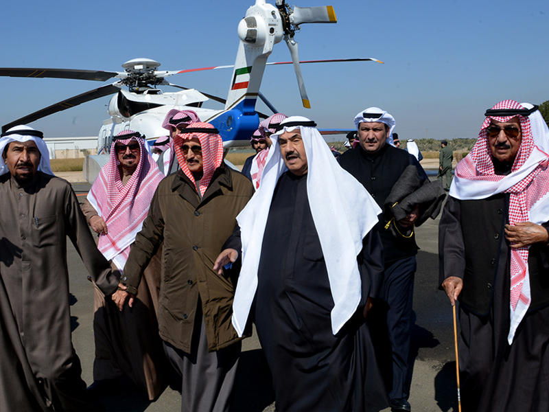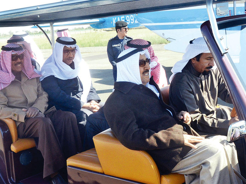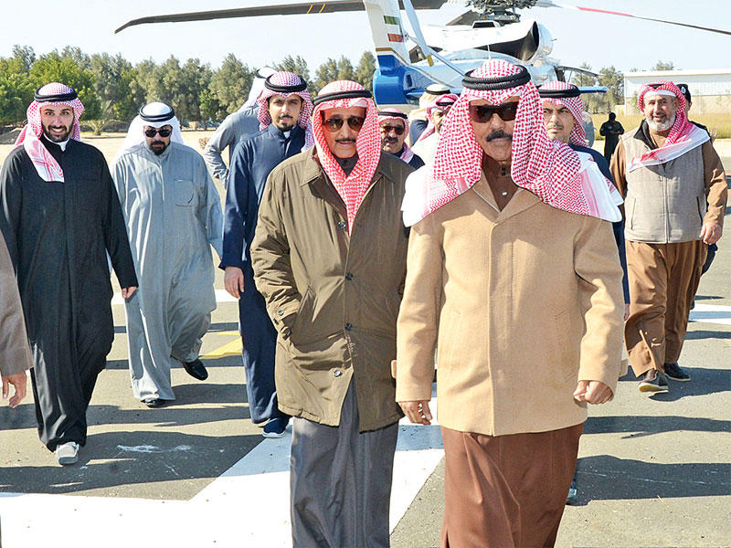 جابر العبدالله وناصر المحمد وإبراهيم الدعيج لدى وصولهم إلى «عزايز»