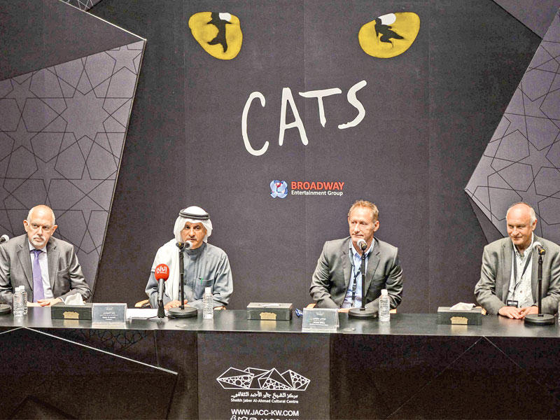 وأشار العوضي إلى أن هذا المؤتمر الصحافي يعد الأول، ويتحدث عن أول عرض مسرحي عالمي يستضيفه مركز الشيخ جابر الثقافي، حيث بدأت الفعاليات بأمسيات غنائية محلية وندوات وأناشيد دينية.ثم تطرق بعد العوضي للحريق الذي اندلع في مبنى رقم 3 بالمركز، فأوضح أنه في تمام الساعة 11 صباحا حصل حريق بسيط في سطح المبنى، مما أظهر وجود دخان كثيف، ولله الحمد تمت السيطرة عليه في 15 دقيقة، وبعد ساعتين من الحادث عادت الأمور كما كانت من قبل الحريق.وأكد العوضي أن الكويت منارة للثقافة للفنون والآداب من مسارح ومتاحف، شاكرا الديوان الأميري على إنجاز هذا المشروع بمدة زمنية بلغت 22 شهرا، لتعود الكويت منفتحة على العالم، وخير دليل وجود هذا الصرح الرائع، مؤكدا أن الآن باستطاعتنا جلب فرق غنائية وعالمية ومسرحية لتوفيرنا البنية التحتية. بدوره، عبر جيمس بيليوس عن سعادته لوجوده وفرقته في الكويت لتقديم أعظم عمل مسرحي غنائي في العالم.وقال: نتطلع كفريق العمل بشغف لتأدية هذه الأيقونة المسرحية الغنائية التي حازت تقديرات عالمية منذ أول عرض لها، في زياراتنا الأولى للكويت، حيث نؤكد تقديم عرض مسرحي أكثر إبهارا عرضا تلو الآخر.وشدد على أنه يشعر بالفخر لوجوده في هذا الصرح الضخم والرائع الذي يتمثل به مركز الشيخ جابر الأحمد الثقافي، وتقديم مسرحية "كاتس" التي لا شك في أن الحضور سيتمتع بها ويسافر في عالمها الآسر".فرصة رائعة