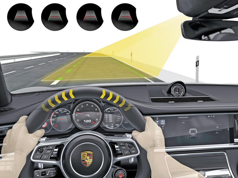زوّدت بورشه الجيل الثاني من "باناميرا" Panamera بالعديد من أنظمة المساندة القياسية والاختيارية، التي تجعل من مهمة القيادة أكثر عملية وأماناً. أبرز نظام جديد هو "مساند الرؤية الليلية" Night Vision Assist الذي يستخدم كاميرا حرارية لاستشعار الأشخاص والحيوانات الكبيرة، ومن ثمّ يعرض مؤشّر تحذير ملوّن في مقصورة القيادة.وفي حال كانت السيارة مزوّدة بمصباحيْ "خلايا الدايود" LED Matrix الأماميّيْن الاختياريين الجديدين مع 84 نقطة صورية يمكن التحكم بها فردياً، تتمّ أيضاً إضاءة الأشخاص الموجودين خارج النطاق المرئي لإضاءة المصباحين المنخفضة لفترة وجيزة في حال كانوا ضمن مسار القيادة المُحتسب، ما يتيح للسائق الاستجابة بشكل أسرع.ولمن يرغب بالنظر مسافة أبعد عبر الطريق، ثمّة نظام "بورشه إنودرايف" Porsche InnoDrive الجديد الذي يتضمن تحكماً متكيّفاً بالسرعة. وهو يعتمد على بيانات ملاحة دقيقة ثلاثية الأبعاد لاحتساب واعتماد التسارع والتباطؤ الأمثليْن، بالإضافة إلى مراحل التطواف واختيار التروس، وذلك لمسافة ثلاثة كيلومترات التالية.للقيام بذلك، يأخذ مساند السائق الإلكتروني هذا بعين الاعتبار، وبشكل أوتوماتيكي، كلاً من المنعطفات والمنحدرات والسرعات القصوى المسموح بها. ويتمّ استشعار السيارات الأخرى والسرعات القصوى المسموح بها حالياً (المرئية) بواسطة الرادار ومجسَّات الفيديو لاعتمادها في نظام التحكم.تجربة الجريدة.