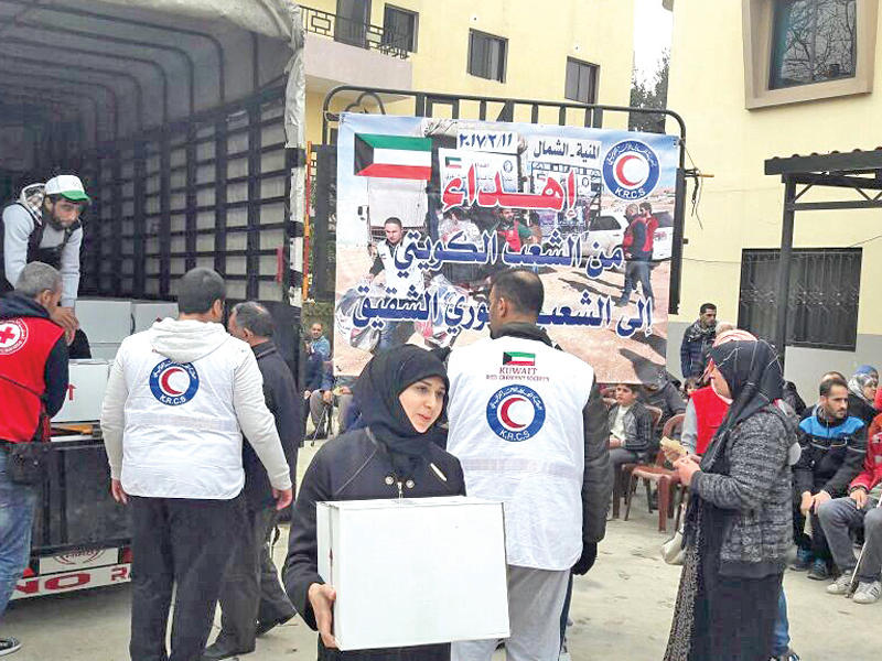 وزعت الكويت، أمس، 500 حصة غذائية على الأسر السورية النازحة في بلدات (سهل عكار) الحدودية شمال لبنان، في اطار حملتها الانسانية لمساعدة النازحين السوريين بلبنان.وقال رئيس الفريق الميداني في جمعية الهلال الاحمر خالد المخيال، في تصريح لـ«كونا»، إن «الجمعية اطلقت هذه الحملة لمساعدة النازحين في ظل الظروف المناخية القاسية التي يشهدها لبنان في فصل الشتاء».وأضاف أن «الحملة ستستمر خلال الايام المقبلة، إذ سيتم توزيع المزيد من المساعدات في مختلف المناطق اللبنانية»، مؤكدا حرص الجمعية على مساعدة اكبر عدد ممكن من النازحين في لبنان.من جهته، أكد منسق عمليات الاغاثة في جمعية الصليب الاحمر اللبناني يوسف بطرس، في تصريح لـ«كونا»، أن المساعدات التي تقدمها الجمعية للنازحين في فصل الشتاء ساهمت بشكل كبير في تخفيف معاناة الاسر النازحة التي تجد صعوبة بالغة في توفير احتياجاتها الاساسية من الغذاء والملبس ووسائل ومواد التدفئة.