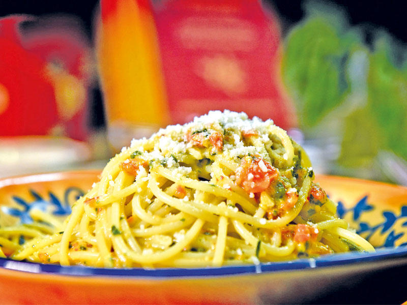 اخترنا لكما وصفتين من كتاب الطبخ الجديد Lidia’s Mastering Art of Italian Cuisine (فن ليديا المتقن في المطبخ الإيطالي) لرئيسة الطهاة الشهيرة ليديا باستيانيش. ستبدو لكما صلصة البيستو غير مألوفة لأنها مصنوعة من طماطم الكرز الطازجة واللوز بدل الصنوبر التقليدي والريحان. وسيدهشكما طبق دجاج بارميجانا بعجينته المقرمشة الخفيفة التي تتماشى مع صلصة الطماطم الطازجة والشبيهة بصلصة شاتني التي يمكن تحضيرها خلال وقت قصير. استمتعا بوجبتكما!معكرونة مع صلصة البيستو ترابانيس