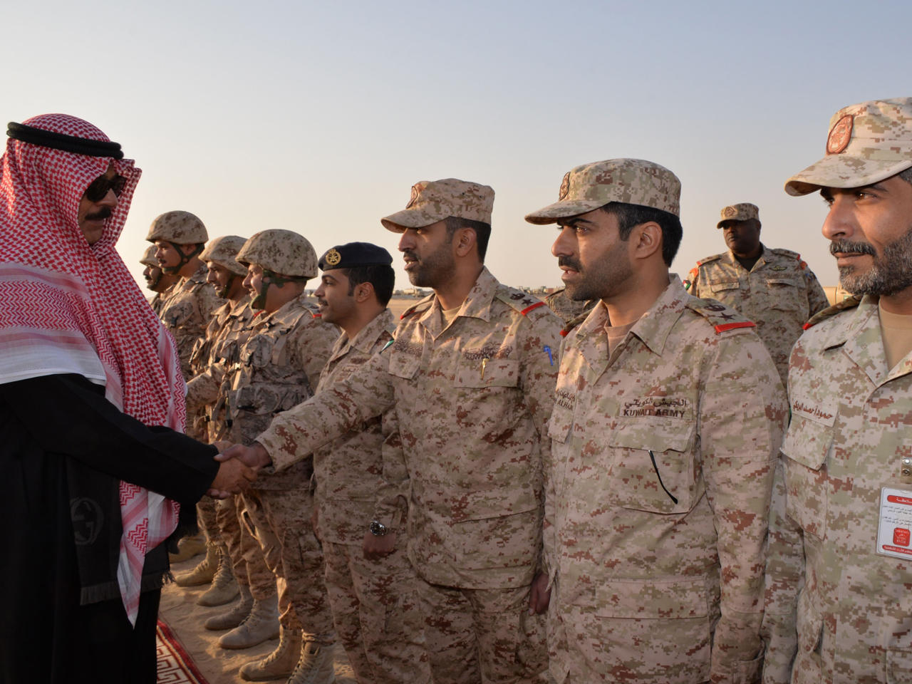 وأثنى على الجهود المبذولة من المشاركين من ضباط وضباط الصف والأفراد وعلى الرماية المتميزة التي جاءت بعد عمل وإخلاص وجهد وتدريب مستمر، متمنياً لهم الاستمرار بالعطاء والتميز حتى يكون الجيش الكويتي دائماً على أتم الاستعداد، منفذاً لمهامه التي أوكلت إليه ليصون أمن واستقرار الوطن.وفي آخر محطات جولة الخالد توجه الى لواء السور الآلي 26، وكان في استقباله آمر اللواء العميد الركن ناصر العتيبي الذي بدوره رحب به، وبالوفد المرافق له، من جانبه التقى بالقوة القطرية المشاركة بتمرين «فهود الصحراء» المشترك والذي تنفذ فعالياته خلال الفترة من 5 فبراير ولغاية 7 مارس2017 بين القوة البرية الكويتية والقوة البرية القطرية، مرحباً بهم في بلدهم الثاني الكويت، كما تمنى لهم طيب الإقامة، تلا ذلك أمسية شعرية القاها ضباط وضباط صف وأفراد لواء السور والقوة القطرية، كما شملت الزيارة عرضاً لفرقة موسيقى الجيش.وقد أقيمت مأدبة عشاء على شرف الخالد حضرها عدد من أعضاء مجلس الدفاع العسكري وقيادات القوة القطرية وعدد من كبار ضباط القادة في الجيش.وفي ختام الجولة وجه الخالد كلمة لمنتسبي القوة البرية نقل من خلالها تحيات صاحب السمو أمير البلاد القائد الأعلى للقوات المسلحة الشيخ صباح الأحمد، وسمو ولي العهد الأمين الشيخ نواف الأحمد وسمو رئيس مجلس الوزراء الشيخ جابر المبارك، قائلا»: «إن الجد والاجتهاد والمثابرة والتفاني في أداء واجبكم محل فخر واعتزاز، واضعين مصلحة الوطن نصب اعينكم الذي يستحق بذل الغالي والنفيس من أجله، وأثمن الجهود التي يقوم بها رجال جيشنا البواسل من أجل السهر على أمن هذا الوطن المعطاء».