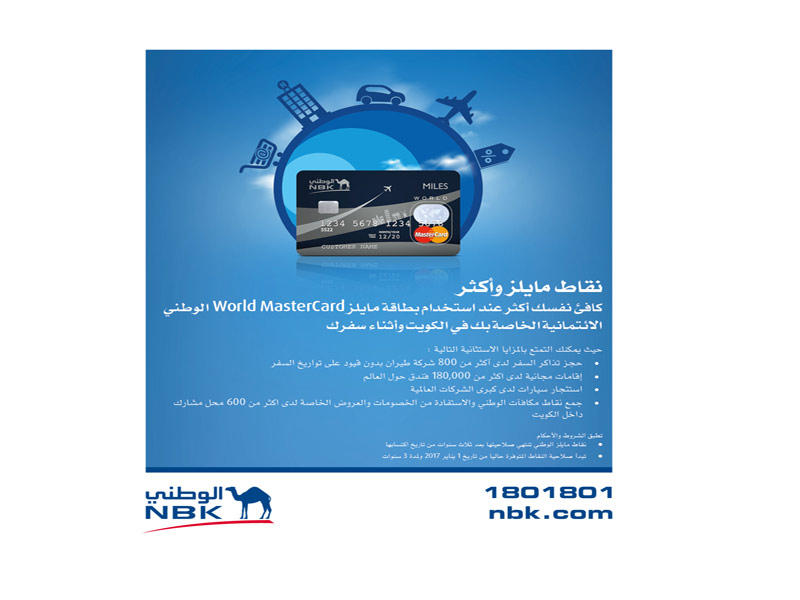 «الوطني» يكافئ حاملي بطاقة مايلز World MasterCard الائتمانية