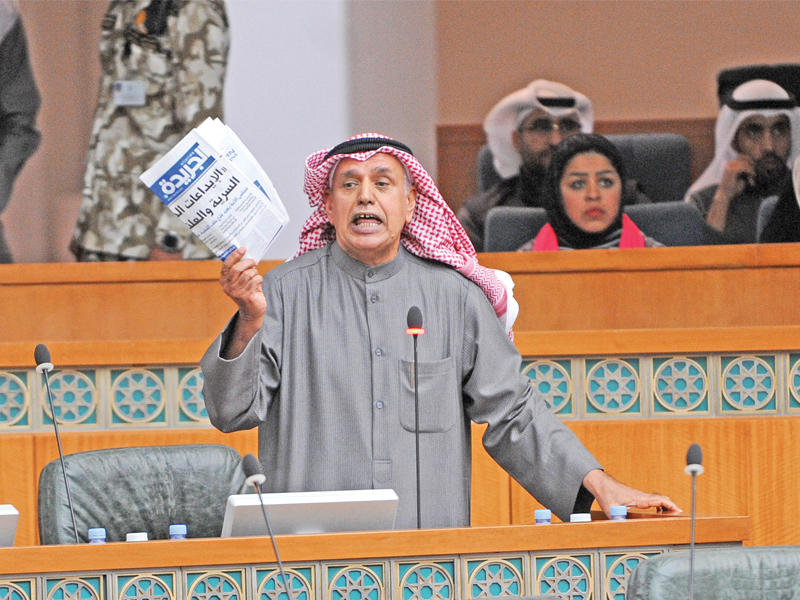 في جلسته التكميلية المتعددة القرارات والملفات، والتي لم تخل من السجالات النيابية التي تسببت في رفعها مؤقتاً، ناقش مجلس الأمة أمس قضية «الإيداعات المليونية» التي شهدت موقفاً حكومياً محايداً في التصويت على طلب المناقشة، وثلاث توصيات في نهايتها أبرزها تكليف ديوان المحاسبة وهيئة مكافحة الفساد تلقي الشكاوى المتعلقة بتلك القضية.وخلال الدقائق الثلاث المحددة لكل نائب للحديث عن القضية بعد تخصيص ساعة لمناقشتها، كشف النائب رياض العدساني أسماء المتهمين فيها، والمبالغ التي حصلوا عليها، إضافة إلى مصادر الدفع.من جانبه، دعا وزير العدل وزير الدولة لشؤون مجلس الأمة د. فالح العزب أعضاء المجلس أثناء المناقشة إلى احترام القواعد الدستورية، وقسمهم النيابي.
