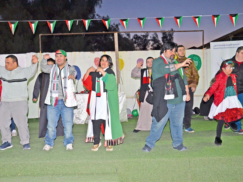 احتفلت الجمعية الكويتية لمتلازمة الداون بالأعياد الوطنية، بمشاركة وحضور الرئيسة الفخرية للنادي الكويتي للمعاقين الشيخة شيخة العبدالله الصباح، ورئيسة الجمعية حصة البالول، والعضوات.وهنأت الشيخة شيخة سمو أمير البلاد الشيخ صباح الأحمد، وسمو ولي العهد، والشعب الكويتي، وكل مقيم على أرضها بذكرى الأعياد الوطنية للدولة، التي تصادف فبراير من كل عام، والتي تعكس روح الولاء والانتماء الوطني التي يتحلى بها أهل الكويت الأوفياء لوطنهم.