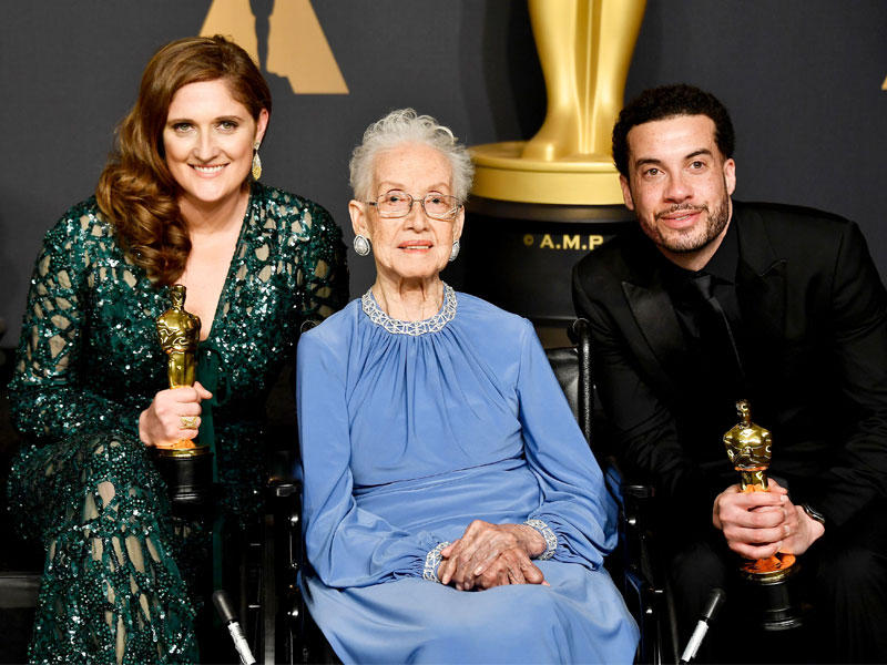 ظهرت على خشبة المسرح عالمة الرياضيات في وكالة الفضاء الأميركية (ناسا)، كاثرين جونسون، وهي على كرسي متحرك، مع نجوم فيلم «أشخاص في الخفاء» جانيل موناي، وتارجي هينسون، وأوكتافيا سبنسر. يحكي الفيلم قصة لا يعرفها الكثيرون عن مجموعة من الأميركيات من أصل أفريقي ومساهمتهنّ في برامج الفضاء الأميركية في الخمسينيات والستينيات.