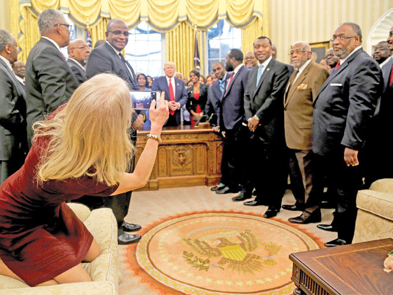 ويريد ترامب زيادة النفقات العسكرية بـ9 في المئة واجراء اقتطاعات في وزارات عدة.وأثار القرار قلق مئة من كبار المسؤولين العسكريين المتقاعدين من بينهم الجنرال المتقاعد ديفيد بترايوس المدير السابق لوكالة الاستخبارات المركزية الاميركية "سي اي ايه". وطلب هؤلاء في رسالة الى الكونغرس والبيت الابيض من ترامب عدم الاقتطاع من الميزانية المخصصة للدبلوماسية وللمساعدات الدولية.الا ان ترامب يرفض المساس بالضمان الاجتماعي الذي يمتص ثلثي النفقات الفدرالية، في حين يريد الرئيس الليبرالي جدا لمجلس النواب بول راين اجراء اقتطاعات.ولدى سؤاله بشأن صعوبة تدبير اكثر من 50 مليار دولار اضافية ستزاد على النفقات العسكرية، راوغ ترامب في الاجابة، وأكد انه يعول على نمو اقتصادي افضل.وقال ترامب أمس لقناة فوكس نيوز: "نحن على الارجح عند رقم يزيد قليلا عن 1 في المئة (نمو)، اذا تمكنت من رفع هذا الرقم الى 3 في المئة وحتى اكثر، فسنكون إزاء وضع مختلف تماما".وإذا كان البيت الابيض اعلن ان الكلمة ستركز على "تجديد الروح الاميركية"، فان ترامب يفضل التأكيد على شعاره القومي "اميركا اولا".وقال ترامب أمس الاول: "ننفق ستة آلاف مليار دولار في الشرق الاوسط، وهناك حفر في كل مكان على طرقاتنا وطرقاتنا السريعة".ولم تنتظر المعارضة الديمقراطية الخطاب للتنديد بنفاق الرئيس على حد تعبيرها. وقال تشاك شومر رئيس الاقلية الديمقراطية في مجلس النواب ان "الرئيس سيلجأ الى الخطاب الشعبوي القديم نفسه، لكن كلماته ستكون جوفاء"، مضيفا "يتكلم كما لو انه سيساعد العمال، بينما افعاله تتعارض مع مصالحهم. سينتهج خط اليمين المتطرف".ويشدد الديمقراطيون على انهم سيقفون جبهة موحدة لابطاء او عرقلة بعض الاصلاحات.ولا يتجاوز هامش الجمهوريين المقعدين في مجلس الشيوخ و22 في مجلس النواب، وهو عدد غير كاف لضمان موافقة مريحة على كل قرارات الرئيس الاميركي الجديد الذي سيتعين عليه اثبات قدراته على التفاوض.وأشاد ترامب بالنجاح الذي حققه الحزب الجمهوري على حساب الحزب الديمقراطي خلال حقبته مستندا على استطلاع قامت به شبكة "ان بي سي" وصحيفة "وول ستريت جورنال". جاء ذلك بعد نجاح إدارة ترامب في تثبيت الملياردير ويلبور روس بسهولة أمس الأول من جانب مجلس الشيوخ وزيرا للتجارة في الولايات المتحدة، رغم تساؤلات حول العلاقات التي قد يكون نسجها مع أفراد روس بصفته نائبا لرئيس مصرف "بنك أوف سايبرس".وحذر الديمقراطيون في الكونغرس أمس الأول الجمهوريين من مغبة عرقلة التحقيقات الجارية حول اتصالات قد تكون حصلت العام الماضي بين مقربين من ترامب والمخابرات الروسية وحول تدخل موسكو في الانتخابات الرئاسية الأميركية.وفي محاولة منه التقرب من السود، قال مسؤول بارز بالبيت الأبيض وقع ترامب على إجراء من شأنه زيادة الدعم الحكومي لكليات وجامعات كان السود تاريخيا يدرسون فيها.وكان ترامب الجمهوري قد تعهد بتحسين الظروف المعيشية للأميركيين السود الذين صوت أغلبهم لمصلحة منافسته الديمقراطية في الانتخابات الرئاسية عام 2016.وسيعيد قرار ترامب وضع البرنامج الحكومي الاتحادي لدعم الكليات والجامعات التي كان السود تاريخيا يدرسون فيها تحت الإشراف المباشر للبيت الأبيض.