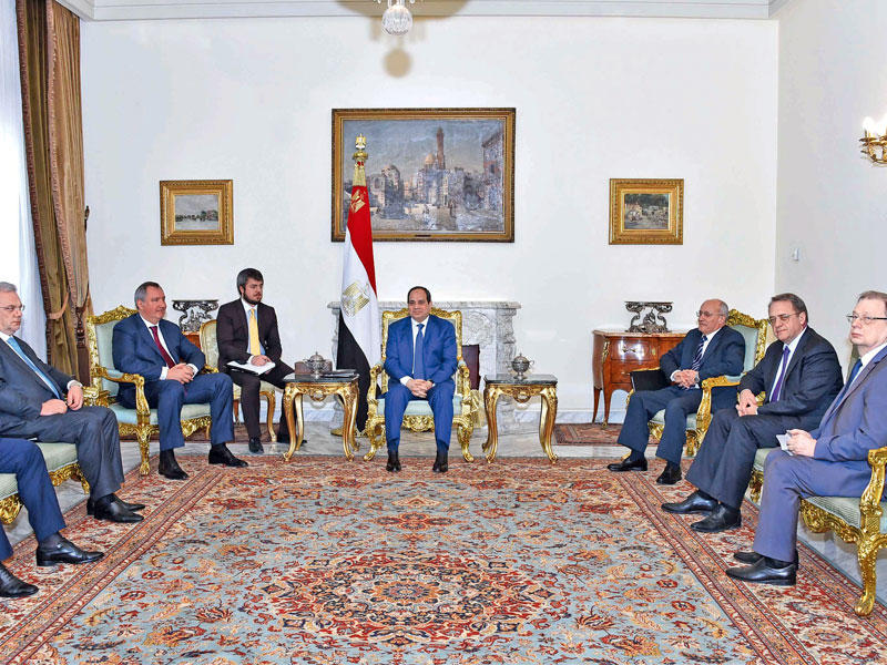 وفي حين استقبل السيسي، نائب رئيس الوزراء الروسي للصناعات الدفاعية، ديميتري روغوزين، أمس، لمناقشة ترسيخ الشراكة مع روسيا في المجالات الصناعية، قال السيسي، خلال استقباله وزراء الصحة العرب، إن "المرأة المصرية كانت على قدر المسؤولية الكبيرة وقامت بدورها على أكمل وجه"، مؤكداً أنها بذلت الكثير من الجهد والعطاء والتضحيات، وأظهرت قدراً كبيراً من الإدراك والوعي والتفهم العميق في مواجهة التحديات التي مرت بها مصر خلال السنوات الماضية.الوضع الأمني