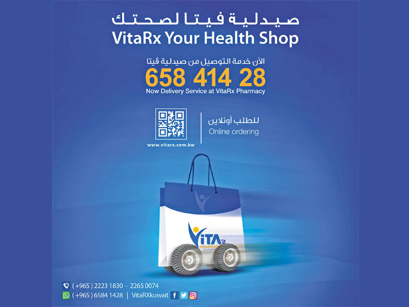يُذكر أن صيدلية «فيتا آر اكس» توفّر خدمات ومنتجات طبية عدة ومتنوعة تشمل الأدوية، والعلاج التكميلي الذي يضمّ الفيتامينات والمكملات الغذائية وغيرها، كذلك مستحضرات التجميل المختلفة كمنتجات الشعر والجلد والأظفار، ومنتجات العناية بالأطفال، ومستحضرات العناية الشخصية، لا سيما بالأسنان والعين، والإسعافات الأولية، والمستلزمات والأجهزة الطبية المعاونة كمنتجات العناية بالجروح، فضلاً عن ميزان الحرارة، وأجهزة قياس ضغط الدم الرقمية، وأجهزة قياس نسبة السكر، وأجهزة الصحة الإلكترونية، وأجهزة تقويم العظام، والجبائر وغيرها من منتجات.• للتواصل مع طاقم الصيادلة في «فيتا آر اكس» أو للحصول على خدمات الصيدلية المتعددة يمكنكم الاتصال على الخط الساخن +965 65841428 أو زيارة موقعنا الإلكتروني www.vitarx.com.kw.